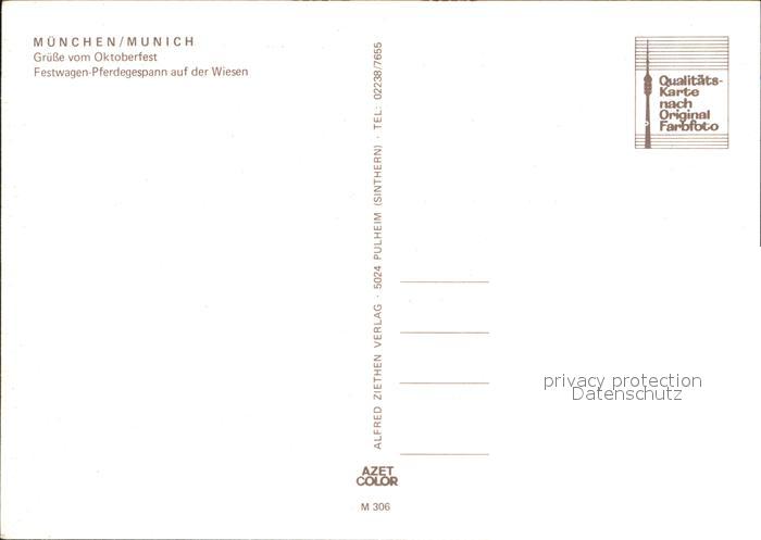 Oktoberfest Muenchen Fetswagen-Pferdegespann Muenchner Kindl postalisch nicht gelaufen Erhaltung siehe scans