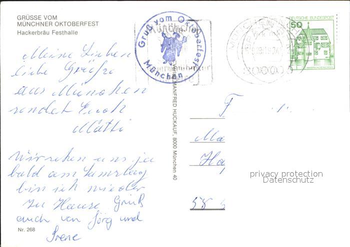 alte Postkarte Oktoberfest Muenchen Hackerbraeu Festhalle postalisch gelaufen Erhaltung siehe scans [PaolaD17]