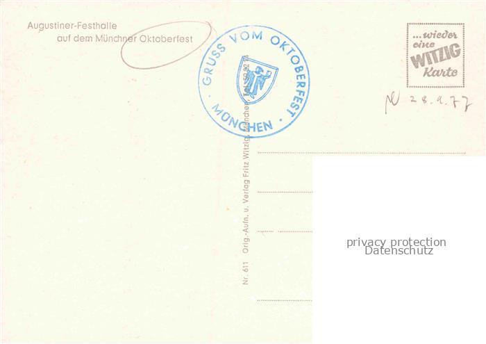 74096503 Oktoberfest Theresienwiese Muenchen Augustiner Festhalle postalisch nicht gelaufen Erhaltung siehe scans [SanaeD93] KatCode: 11110009162000