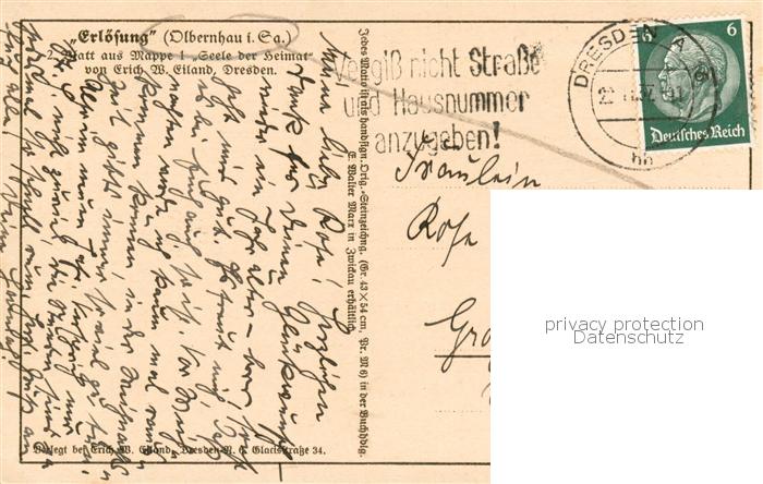 73805649 alte Postkarte Olbernhau Erzgebirge Erloesung Kuenstlerkarte postalisch gelaufen Erhaltung siehe scans [FriedD77] KatCode: 11110014181280