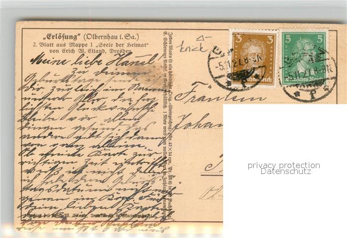 43057943 alte Postkarte Olbernhau Erzgebirge Erloesung Zeichnung postalisch gelaufen Erhaltung siehe scans [KathaD81] KatCode: 11110014181280
