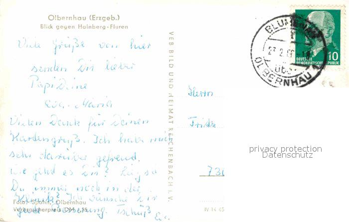 72643603 alte Postkarte Olbernhau Erzgebirge Hainber-Fluren postalisch gelaufen Erhaltung siehe scans [NatalD47] KatCode: 11110014181280