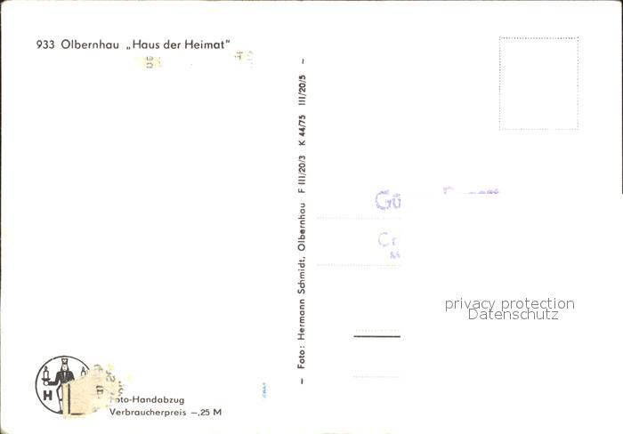 72250199 Olbernhau Erzgebirge Haus der Heimat Handabzug postalisch nicht gelaufen Erhaltung siehe scans KatCode: 11110014181280
