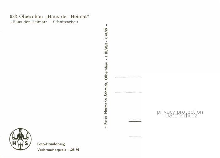 72636011 Olbernhau Erzgebirge Haus der Heimat Schnitzarbeit Sepp und Zachenkarl Handabzug postalisch nicht gelaufen Erhaltung siehe scans [FriedD77] KatCode: 11110014181280