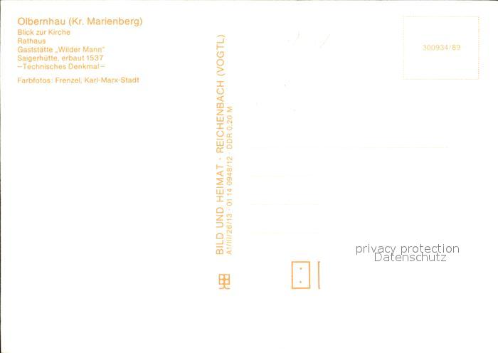 72424138 Olbernhau Erzgebirge Kirche Rathaus Gaststaette Wilder Mann Saigerhuette postalisch nicht gelaufen Erhaltung siehe scans KatCode: 11110014181280