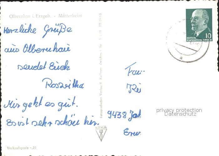 72350936 alte Postkarte Olbernhau Erzgebirge Muetterheim postalisch gelaufen Erhaltung siehe scans KatCode: 11110014181280