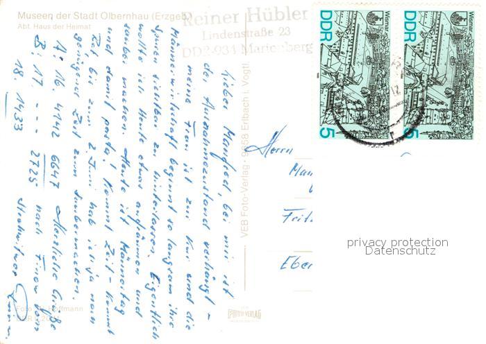 73152677 alte Postkarte Olbernhau Erzgebirge Museum Haus der Heimat postalisch gelaufen Erhaltung siehe scans [FriedD77] KatCode: 11110014181280