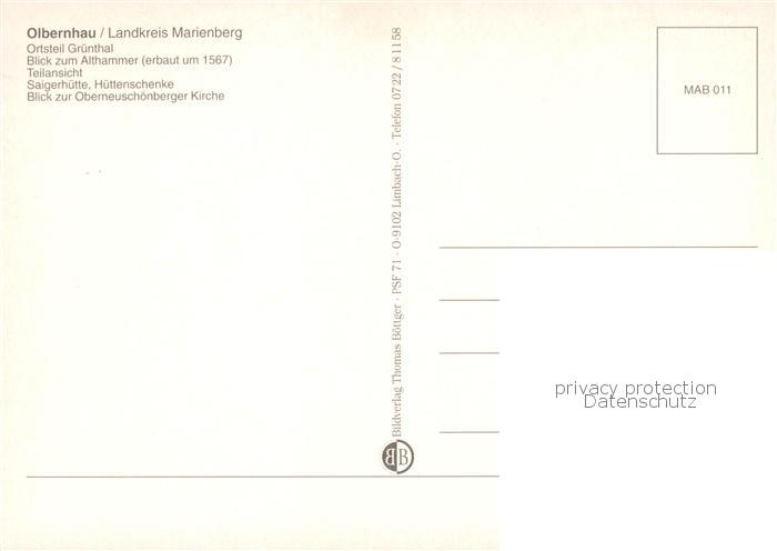 73839915 Olbernhau Erzgebirge OT Gruenthal Althammer Teilansicht Saigerhuette Huettenschenke Oberneuschoenberger Kirche postalisch nicht gelaufen Erhaltung siehe scans [WerneD78] KatCode: 11110014181280
