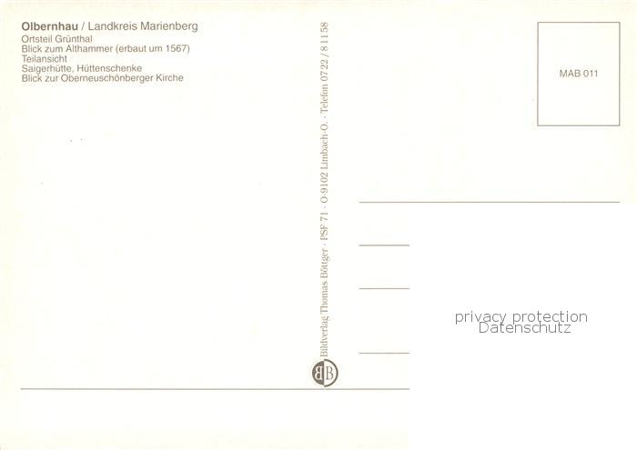 73841659 Olbernhau Erzgebirge OT Gruenthal Althammerblick Teilansicht Saigerhuette Huettenschenke Oberneuschoenberger Kirche postalisch nicht gelaufen Erhaltung siehe scans [WerneD78] KatCode: 11110014181280