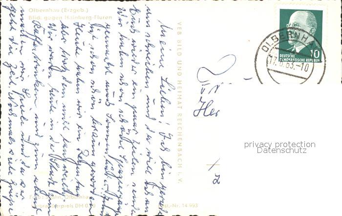 71903220 alte Postkarte Olbernhau Erzgebirge Panorama Blick gegen Hainberg Fluren postalisch gelaufen Erhaltung siehe scans KatCode: 11110014181280