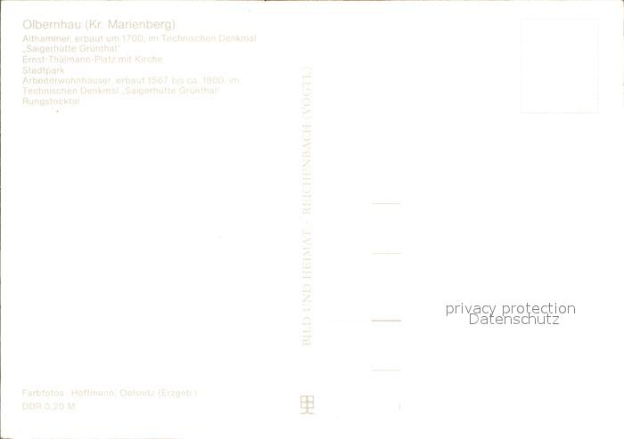72382637 Olbernhau Erzgebirge Saigerhuette Gruenthal Ernst-Thaelmann-Platz Kirche postalisch nicht gelaufen Erhaltung siehe scans KatCode: 11110014181280