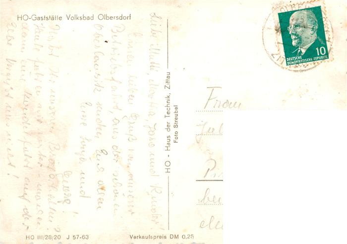 73887396 alte Postkarte Olbersdorf Sachsen HO Gaststaette Volksbad Olbersdorf Gastraeume postalisch gelaufen Erhaltung siehe scans [WerneD78] KatCode: 11110014286320