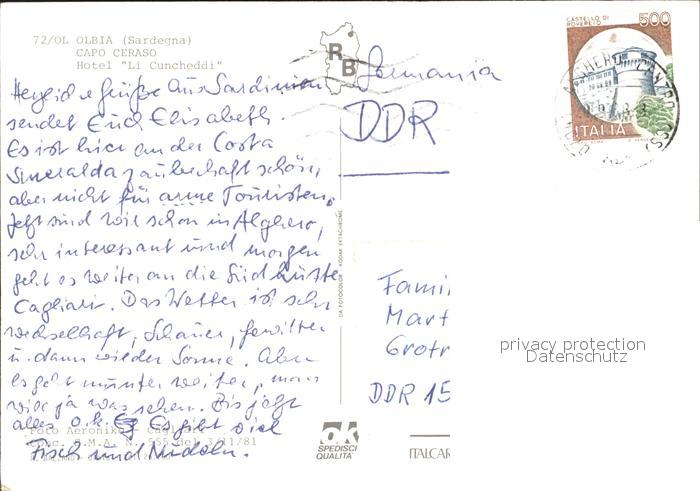 old postcard Olbia Capo Ceraso Hotel Li Cuncheddi Fliegeraufnahme postalisch gelaufen Erhaltung siehe scans
