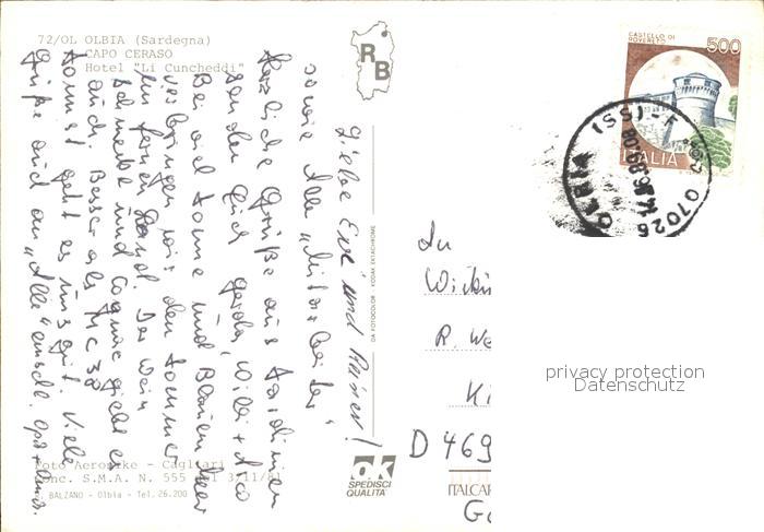 old postcard Olbia Capo Ceraso Hotel Li Cuncheddi postalisch gelaufen Erhaltung siehe scans