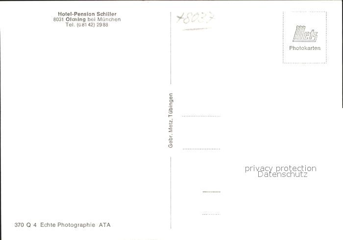 41760704 Olching Hotel Pension Schiller postalisch nicht gelaufen Erhaltung siehe scans KatCode: 11110009179142