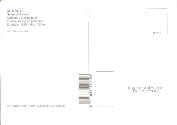 Oldehove Achtkante stellingmolen postalisch nicht gelaufen Erhaltung siehe scans
