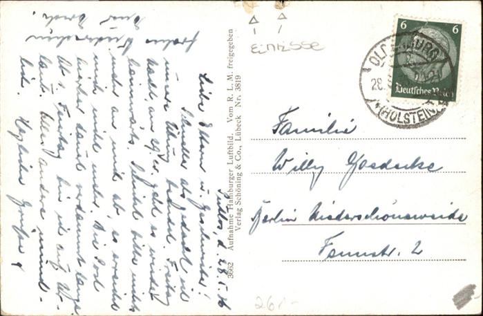 71026651 alte Postkarte Oldenburg Holstein Fliegeraufnahme postalisch gelaufen KatCode: 11110001055033