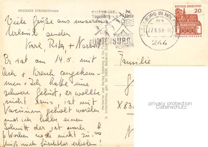 73761101 alte Postkarte Oldenburg Holstein Wesseker Strand Fliegeraufnahme postalisch gelaufen Erhaltung siehe scans [WerneD78] KatCode: 11110001055033