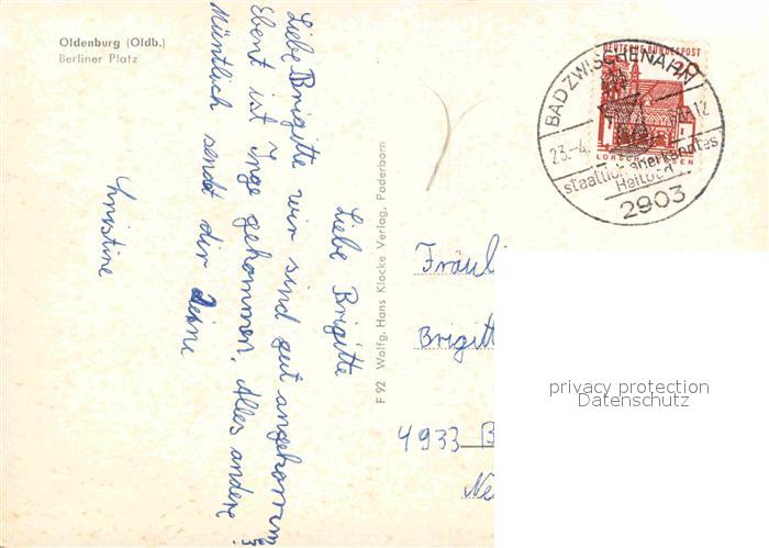 72760598 alte Postkarte Oldenburg Niedersachsen Berliner Platz postalisch gelaufen Erhaltung siehe scans [LiesaD40] KatCode: 11110003403000
