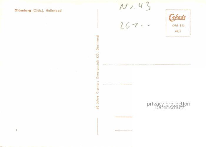 72880237 Oldenburg Niedersachsen Hallenbad postalisch nicht gelaufen Erhaltung siehe scans [FriedD77] KatCode: 11110003403000