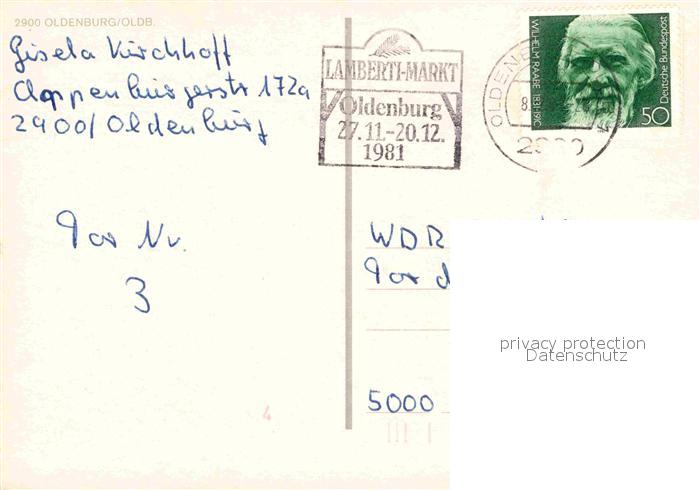 72752852 alte Postkarte Oldenburg Niedersachsen Kirche Rathaus Denkmal postalisch gelaufen Erhaltung siehe scans [KathaD81] KatCode: 11110003403000