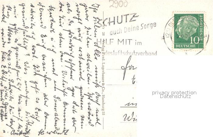 73694938 alte Postkarte Oldenburg Niedersachsen Schloss Schlossgarten Lamberti Kirche Hafen Langestrasse postalisch gelaufen Erhaltung siehe scans [FriedD77] KatCode: 11110003403000