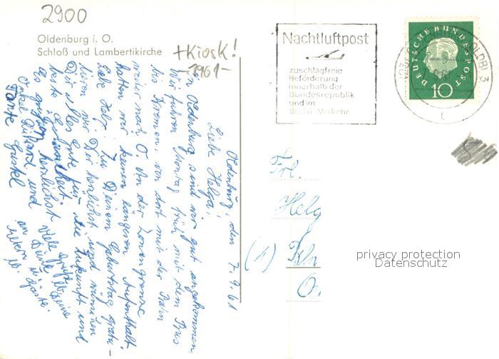 73705670 alte Postkarte Oldenburg Niedersachsen Schloss und Lamberthikirche mit Kiosk postalisch gelaufen Erhaltung siehe scans [LiesaD40] KatCode: 11110003403000