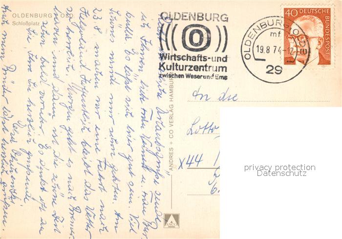 73071886 alte Postkarte Oldenburg Niedersachsen Schlossplatz Wasserspiele postalisch gelaufen Erhaltung siehe scans [FriedD77] KatCode: 11110003403000