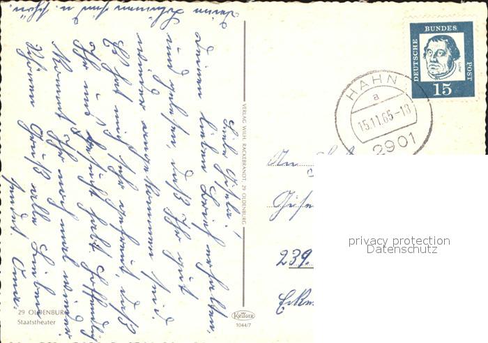 72573477 alte Postkarte Oldenburg Niedersachsen Staatstheater postalisch gelaufen Erhaltung siehe scans [KathaD79] KatCode: 11110003403000