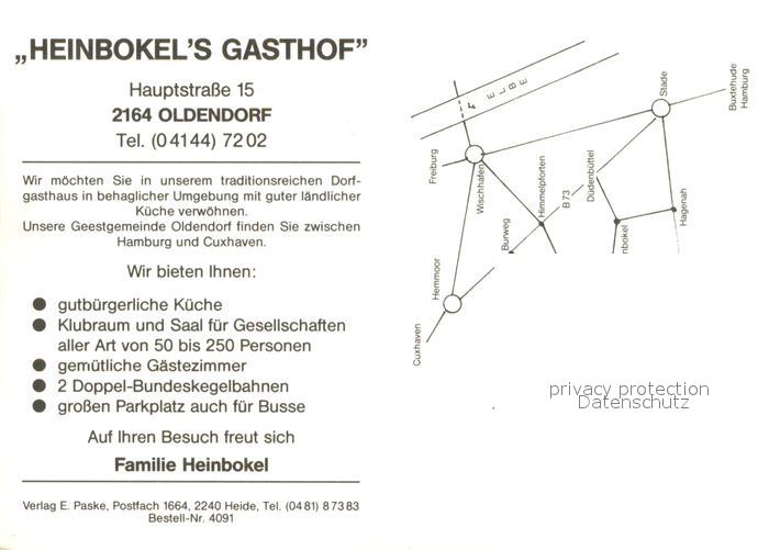 73731684 Oldendorf Stade Heinbokels Gasthof Anfahrt postalisch nicht gelaufen Werbekarte (keine Postkarte) Erhaltung siehe scans [LiesaD40] KatCode: 11110003359036