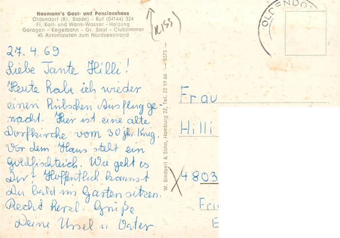 73896670 alte Postkarte Oldendorf Stade Neumanns Gast und Pensionhaus Gastraum Gaestehaus postalisch gelaufen Erhaltung siehe scans [WerneD78] KatCode: 11110003359036
