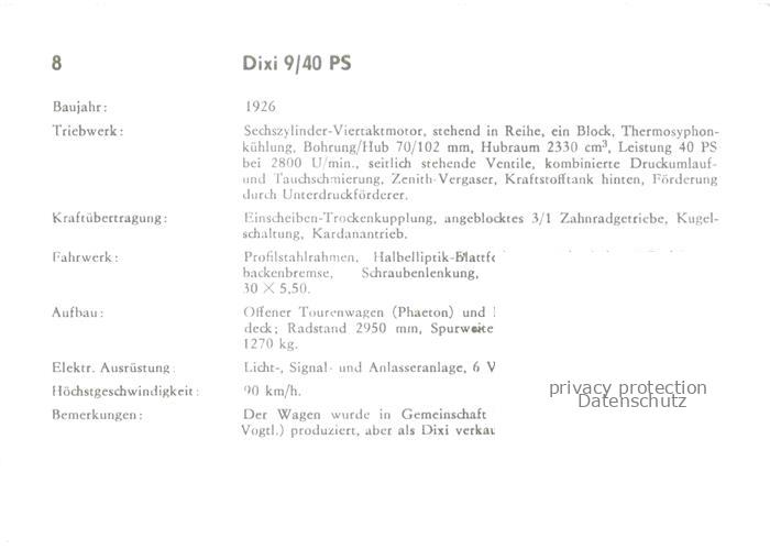74012008 Oldtimer Autos Dixi 9/40 PS postalisch nicht gelaufen Erhaltung siehe scans [IrynaD87] KatCode: 22020000000300