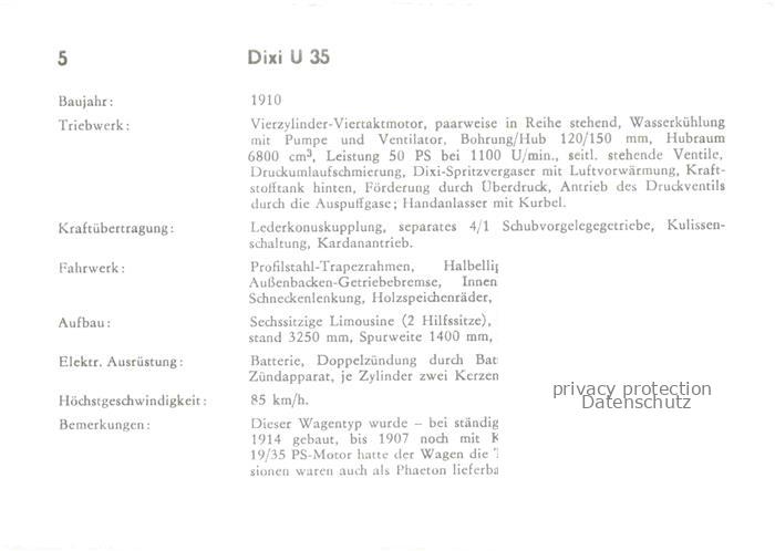74011999 Oldtimer Autos Dixi U 35 postalisch nicht gelaufen Erhaltung siehe scans [IrynaD87] KatCode: 22020000000300