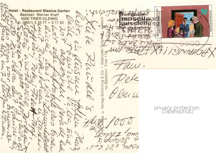 73793631 alte Postkarte Olewig Hotel Restaurant Blesius-Garten postalisch gelaufen Erhaltung siehe scans [FriedD77] KatCode: 11110007211000