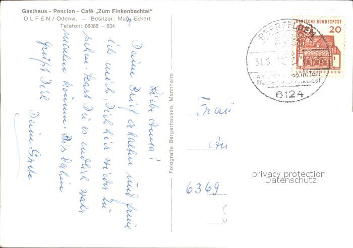 72104776 alte Postkarte Olfen Odenwald Panorama Gasthaus Pension Zum Finkenbachtal postalisch gelaufen Erhaltung siehe scans KatCode: 11110006437002