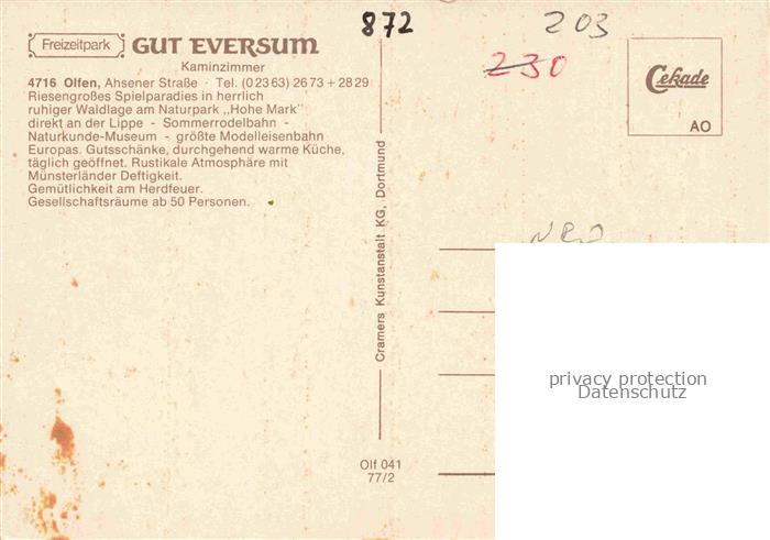 74037979 Olfen Westfalen Freizeitpark Gut Eversum Kaminzimmer postalisch nicht gelaufen Erhaltung siehe scans [FriedD77] KatCode: 11110005558036
