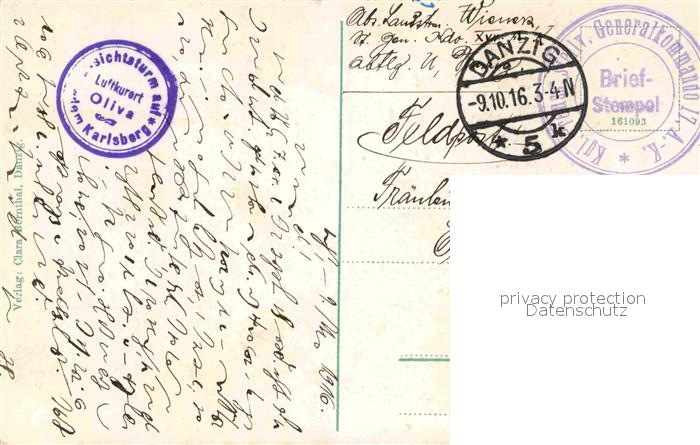 12730955 old postcard Oliva Westpreussen Danzig Gdansk Der Karlsberg postalisch gelaufen Feldpost Erhaltung siehe scans [WerneD78] KatCode: 11410