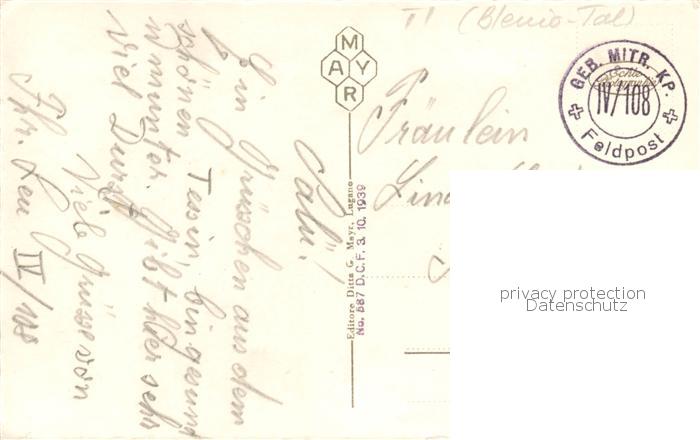 13797449 alte Postkarte Olivone TI Ortsansicht mit Kirche postalisch gelaufen Feldpost – Stempel Erhaltung siehe scans [FriedD77] KatCode: 11470210645830