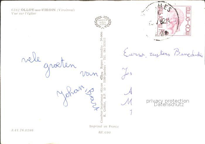 72268529 carte postale Olloy-sur-Viroin Eglise postalisch gelaufen Erhaltung siehe scans KatCode: 11070093001661