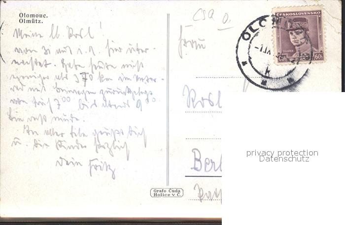 12163767 old postcard Olmuetz Olomouc postalisch gelaufen Erhaltung siehe scans KatCode: 11520