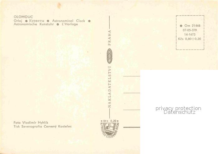 Olomouc Astronomische Kunstuhr postalisch nicht gelaufen Erhaltung siehe scans [AndreD76]