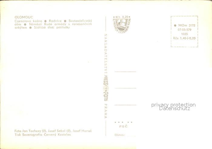Olomouc Caesarova kasna Radnice Svatovaclavsky dom Namesti Rude armady s renesancnim arkyrem Sidliste treti petiletky postalisch nicht gelaufen Erhaltung siehe scans