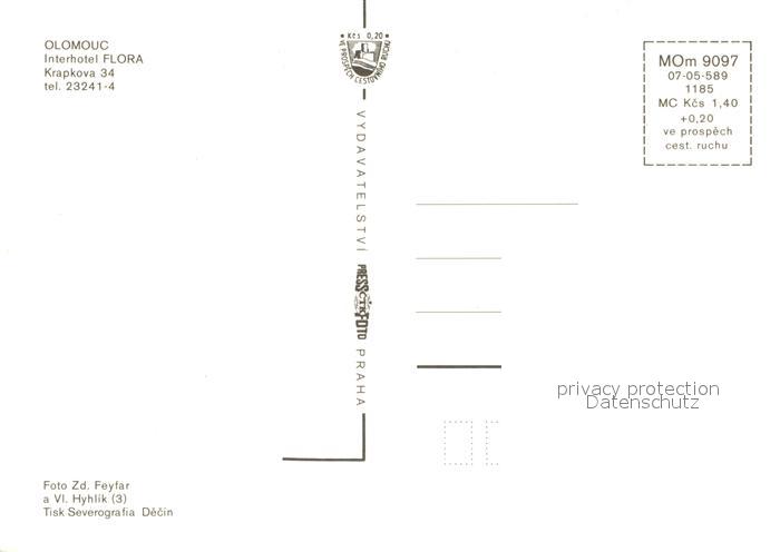 Olomouc Interhotel Flora Restaurant Park postalisch nicht gelaufen Erhaltung siehe scans [FriedD77]
