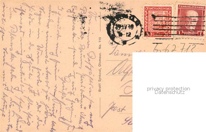 old postcard Olomouc Masarykovo namsti postalisch gelaufen Erhaltung siehe scans [KathaD81]