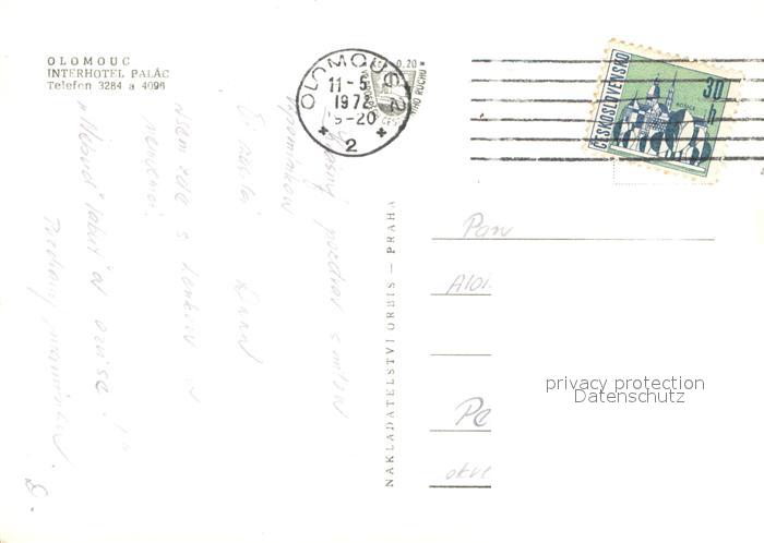 old postcard Olomouc Olmuetz CZ Interhotel Palac Gastraeume postalisch gelaufen Erhaltung siehe scans [FriedD77]