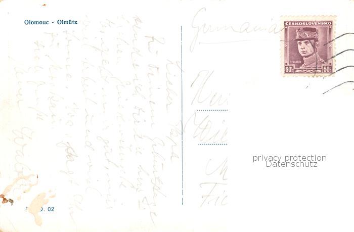 73851403 Olomouc Olmuetz CZ Stadtzentrum Dreifaltigkeitssaeule postalisch gelaufen Erhaltung siehe scans [FriedD77] old postcard Frie Katcode 11520