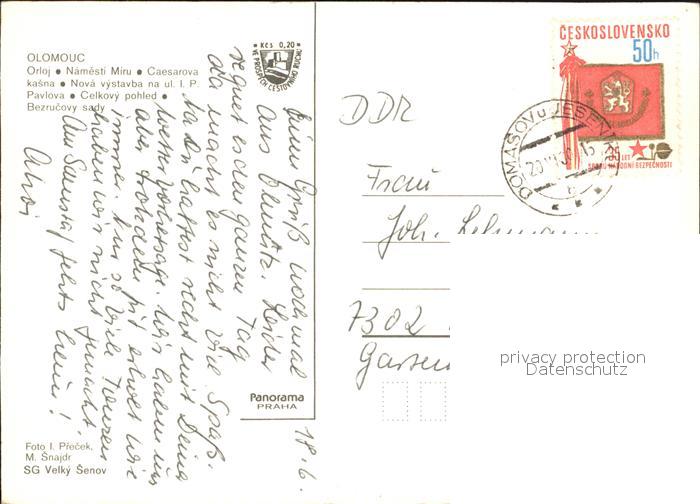 old postcard Olomouc Orloj Namesti Miru postalisch gelaufen Erhaltung siehe scans