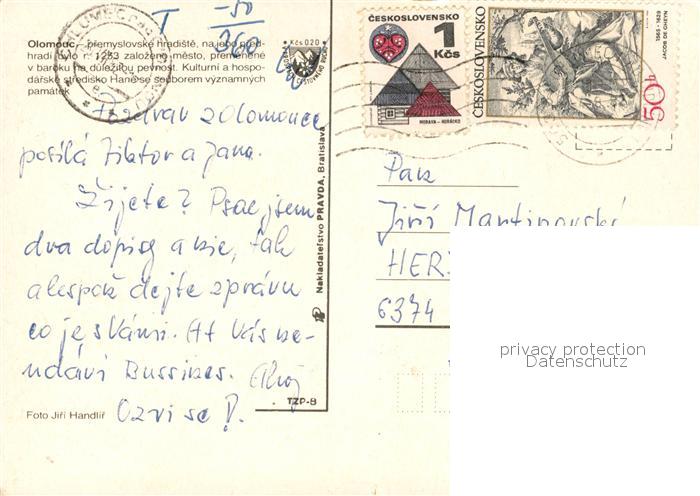 old postcard Olomouc Premyslovske hradiste na jeho piedhradi bylo Premenene v baroku na dulezitou pevnost Kulturni a hospodarske stredisko Hane postalisch gelaufen Erhaltung siehe scans [WerneD78]