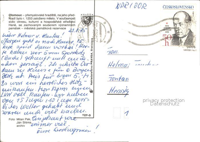old postcard Olomouc Rathaus Wenzelsdom Dreifaltigkeitssaeule postalisch gelaufen Erhaltung siehe scans