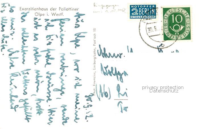 73151643 alte Postkarte Olpe Biggesee Exerzitienhaus Pallotiner postalisch gelaufen Erhaltung siehe scans [KathaD81] KatCode: 11110005966024